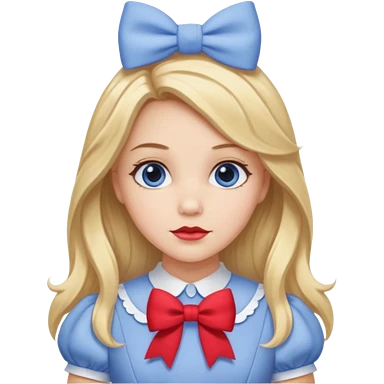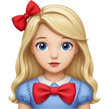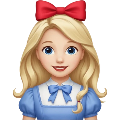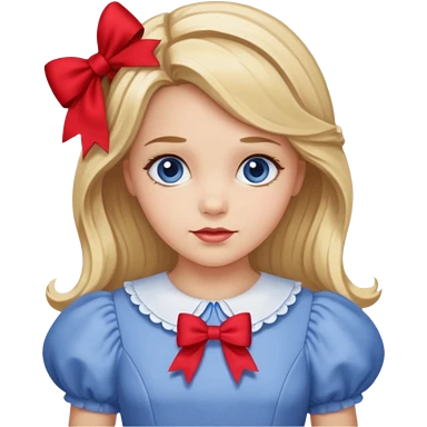 Dorothy Gale from The Land of Oz with long blonde hair, periwinkle outfit, red bow emoji