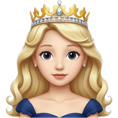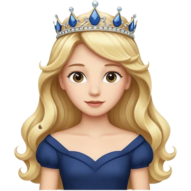 Princess in Navy Dress with Tiara, long wavy Blonde Hair emoji