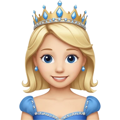 Princess in Blue Dress with Tiara, Blonde Hair emoji | AI Emoji Generator