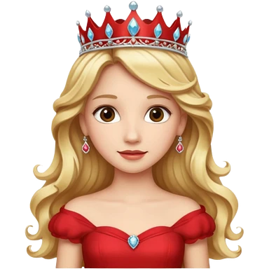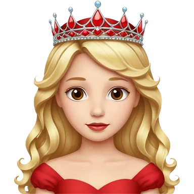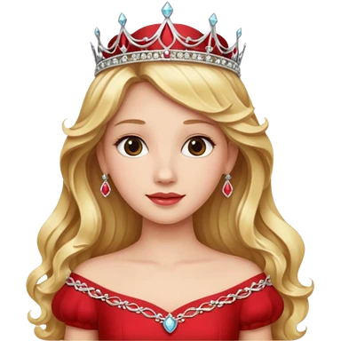 Princess in red Dress with gold Tiara, long wavy Blonde Hair emoji