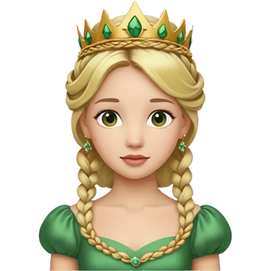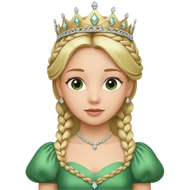 Princess in green Dress with Tiara, Braided Blonde Hair emoji