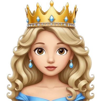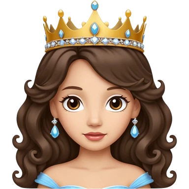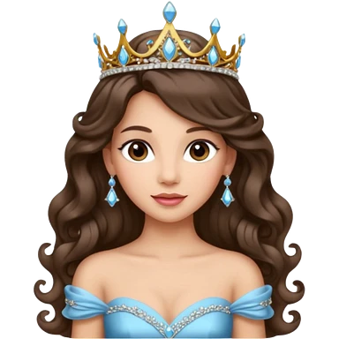 Princess with long glam curled hair, dark brown eyes, light skin tone. emoji