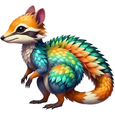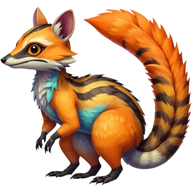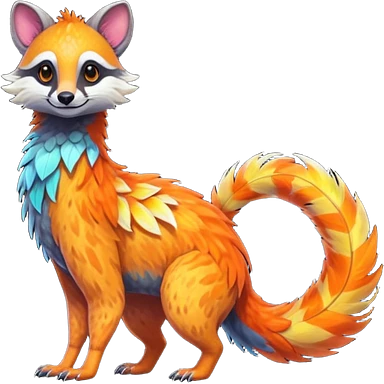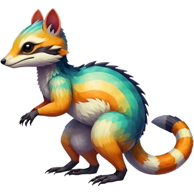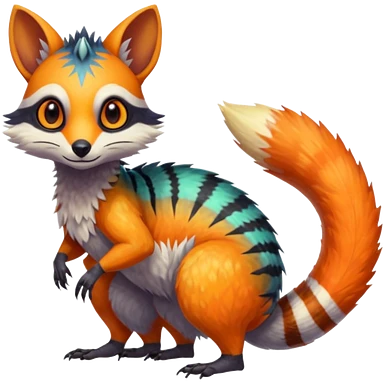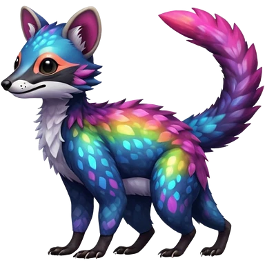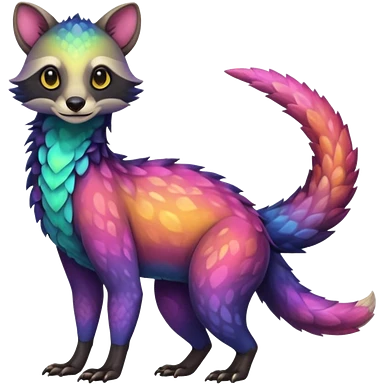 Colorful Fruity Iridescent Warm-colored Tropical Exotic Vernid-Sergal-Trico-Civet-fusion-hybrid-animal-creature, full body emoji