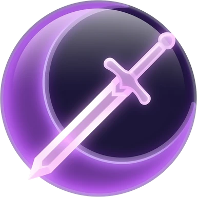 Glowing purple crescent moon with an elegant glowing purple transparent sword, emoji style. Soft violet and pink glow, minimal clean design, smooth edges, subtle lighting, centered, high contrast, transparent background. emoji