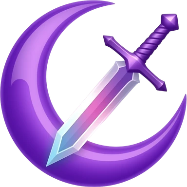 Glowing crescent purple moon with an elegant purple sword, emoji style. Soft violet and white glow, minimal clean design, smooth edges, subtle lighting, centered, high contrast, transparent background, readable at small size. emoji