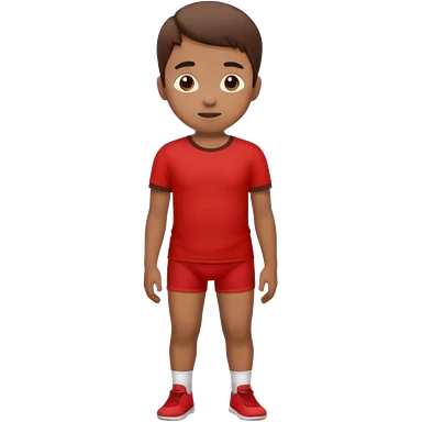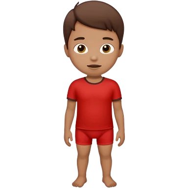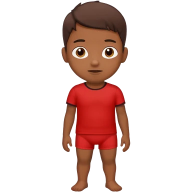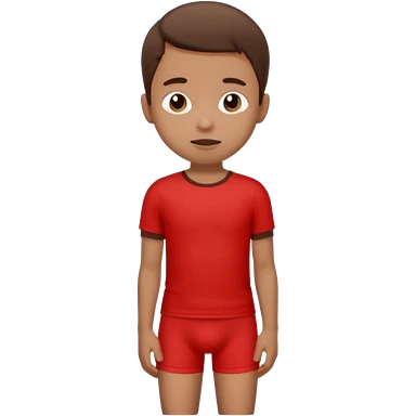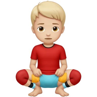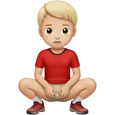 A kid wearing a poopy underwear with a red t-shirt squatting down emoji