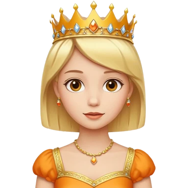 Princess in orange yellow Dress with gold Tiara, short Blonde Hair emoji