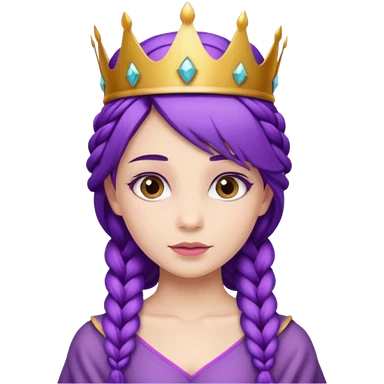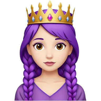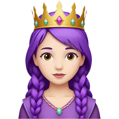 Princesses, with Gold Crown on purple braid hair, with green dress emoji