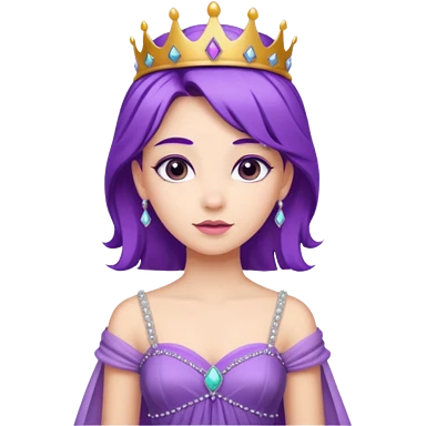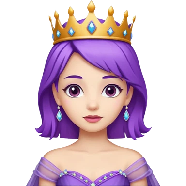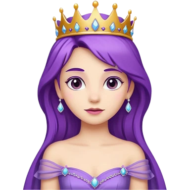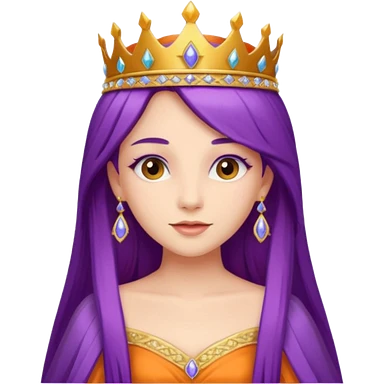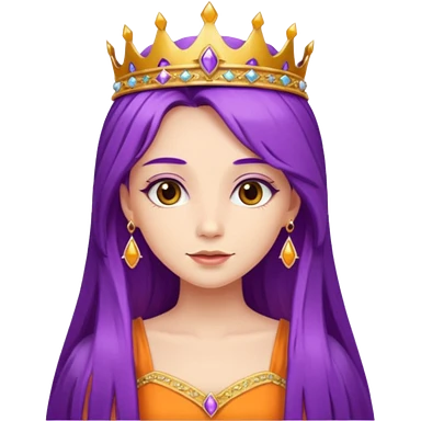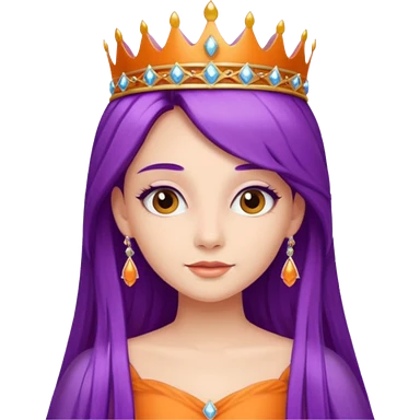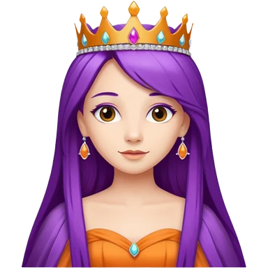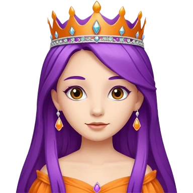 Princesses with long Purple Hair in Gown with gold Tiara, orange dress emoji