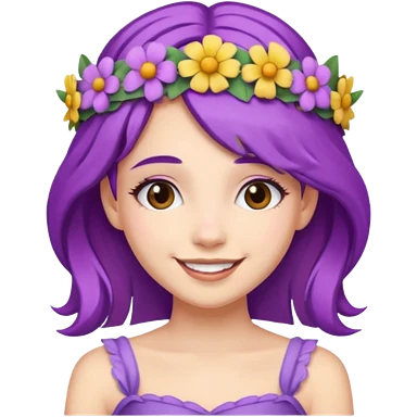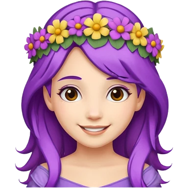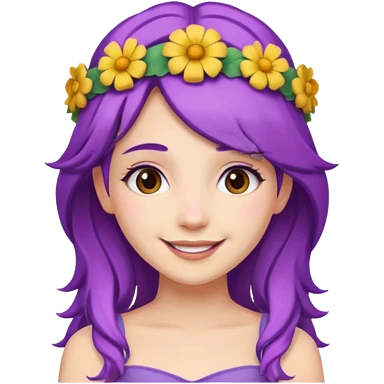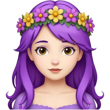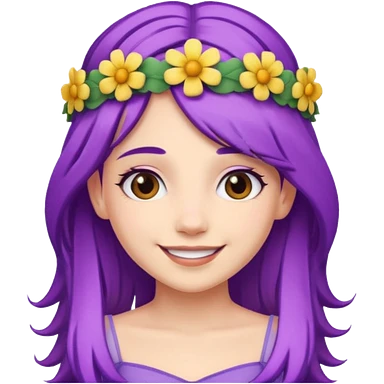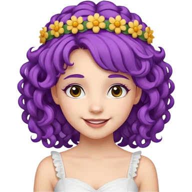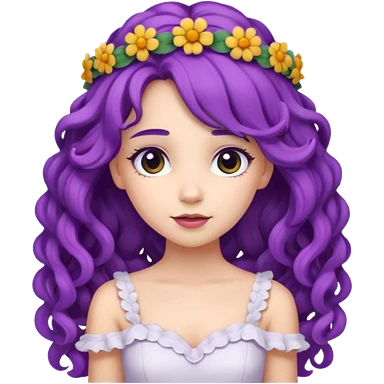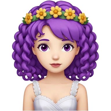 Princesses with Flower Crown in curly Purple Hair, white dress emoji