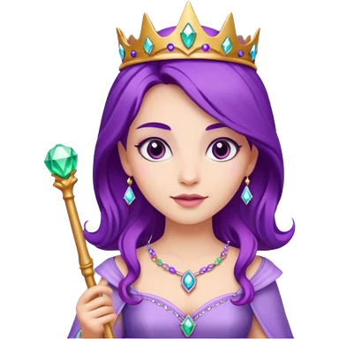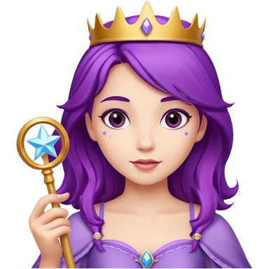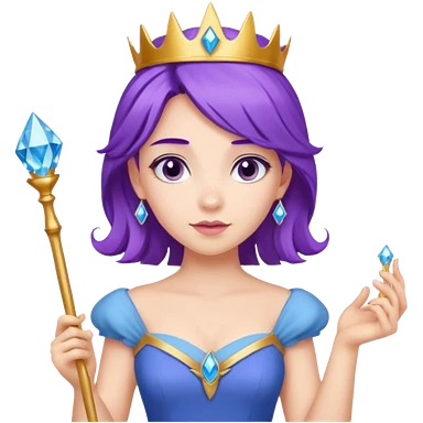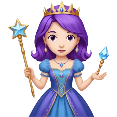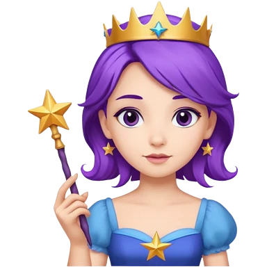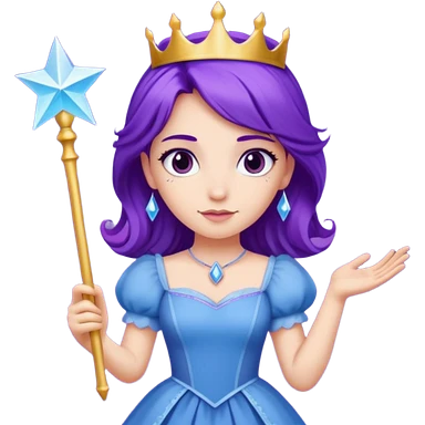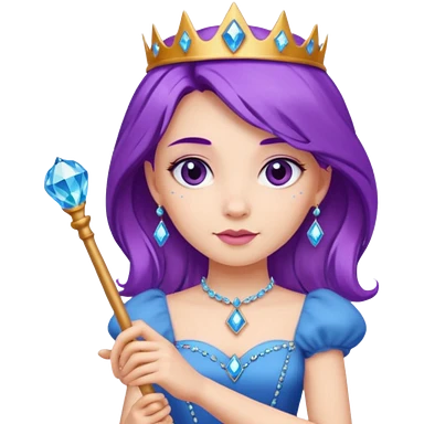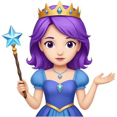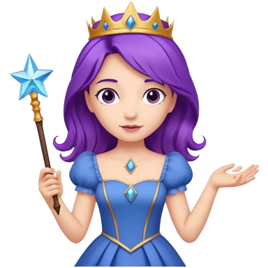Princesses with Magic Wand in Purple Hair, blue dress emoji | AI Emoji Generator