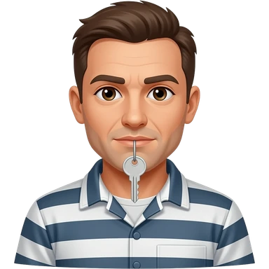 prisoner with orange shirt, metal bars in front of him and he touches the bars emoji