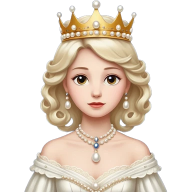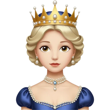 A refined Victorian queen with pearl crown, elegant gown, and composed regal posture. emoji