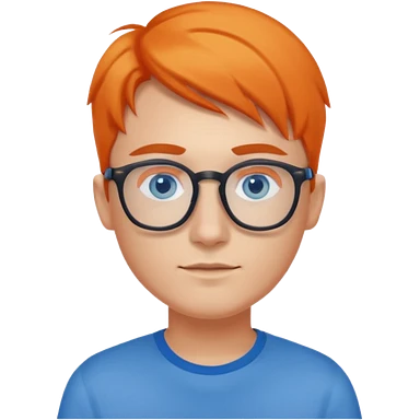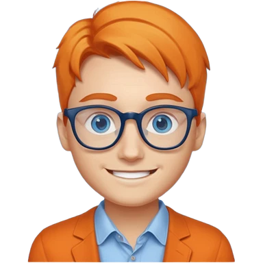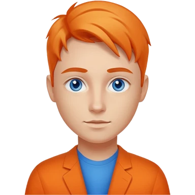 A young UX UI designer with blue eyes and semi orange side part emoji