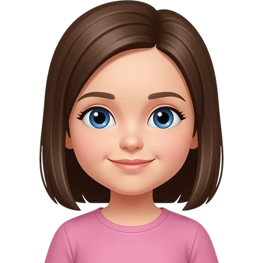 Chica de pelo liso y marrón con ojos color marrón claro y una camiseta blanca emoji