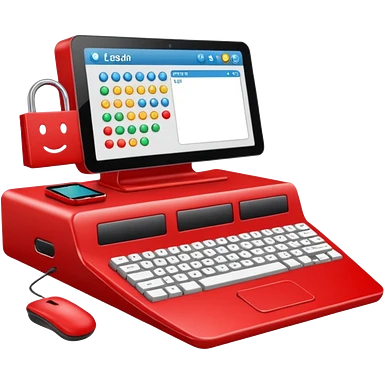 HAZ UN computador de color rojo carmesí brillante y que la pantalla tenga un to-do list emoji