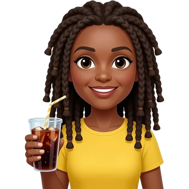 professional black woman in her 40s with hair dreads wearing a yellow top and holding cup of soda emoji