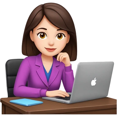 professional woman with a badge sitting at a modern desk, open laptop, coffee cup, pastel office interior, line art style, soft colors emoji | AI Emoji Generator