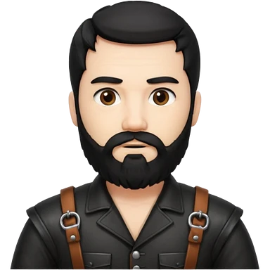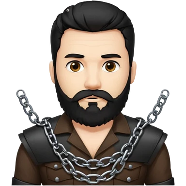 Emoji man with beard holding macbook in hands wearing transparent glasses and shirt, profession - graphic designer. Features: white skin, weight 100 kg, dark hair, age 21 years, earring in left ear emoji