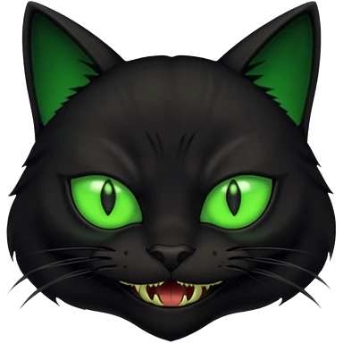 scary black cat with fur raised, glowing eyes, and fangs emoji