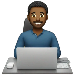 programmer at a computer wearing glasses. Side part hairstyle emoji