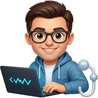 programmer with protruding teeth and glasses, sitting behind a laptop, simple, clear emoji style emoji