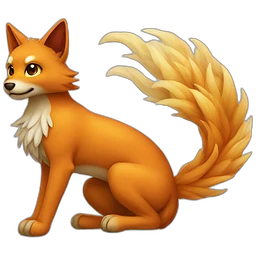 Programmer with Japanese red, black, white kitsune mask walks 2 legs with nine tails emoji | AI Emoji Generator
