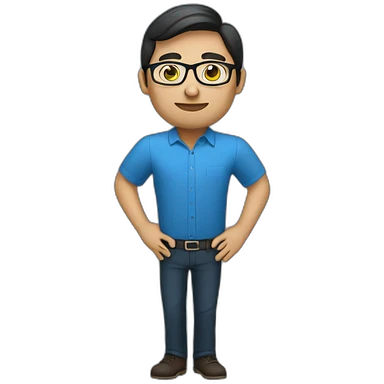 project manager dark hair glasses blue shirt emoji