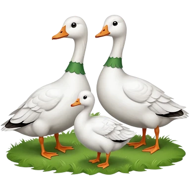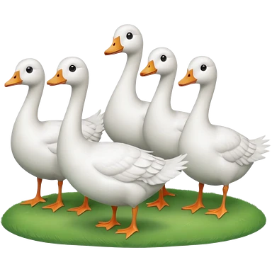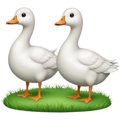 white geese standing on a small green hill, front view, foggy emoji