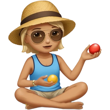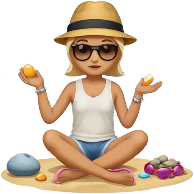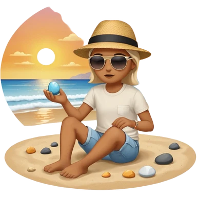 Someone sitting on the ground in the Beach close to the water and throws stone at the water and it's a sunset emoji