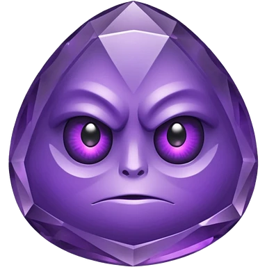 Single gemstone amethyst character, squat and heavy like a rock, with carved facets with eyes emoji