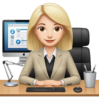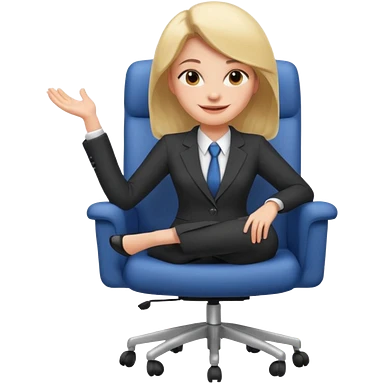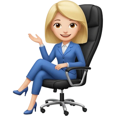 Cartoon faced woman smiling and relaxing and aligned in a chair in office make the face a cartoon character emoji