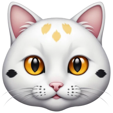 Un gato blanco con manchas en los ojos y cola negra emoji