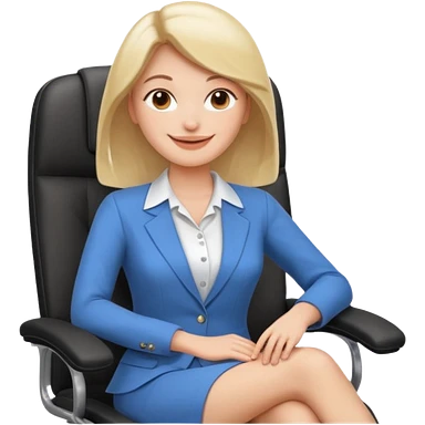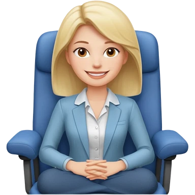 Cartoon face woman smiling and relaxing and aligned in a chair in office emoji