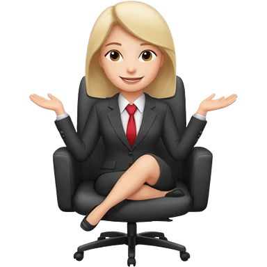 Woman having cartoon faced relaxing in an office chair and smiling emoji