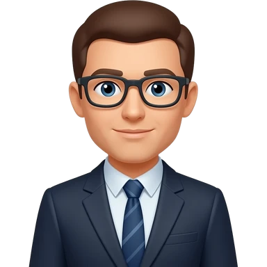 proportional body height adult lawyer in suit with brown hair and brown eyes and round gold glasses emoji | AI Emoji Generator