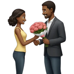 A man holding a bouquet and proposing a girl emoji