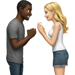 Black guy proposing on one knee with a ring to a girl with brown hair emoji