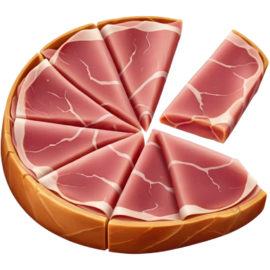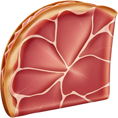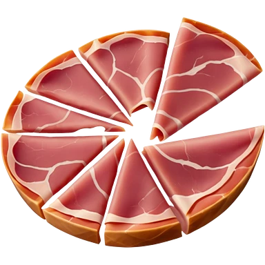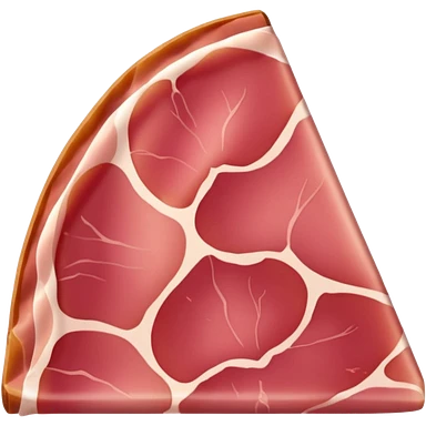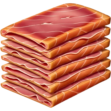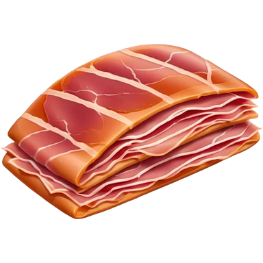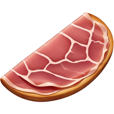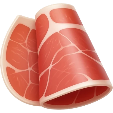 Prosciutto di Parma, thin folded slices, pink to red, white fat ribbons, silky, translucent, curled or rippled, smooth creamy fat, marbled, clean 3D, soft lighting, transparent background, emoji scale emoji | AI Emoji Generator
