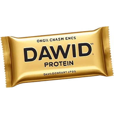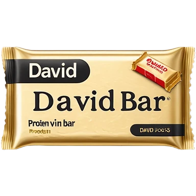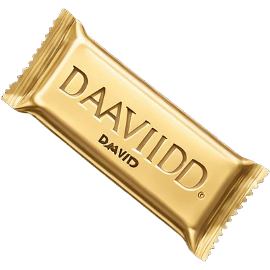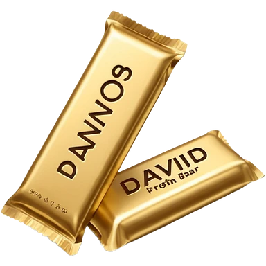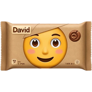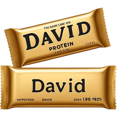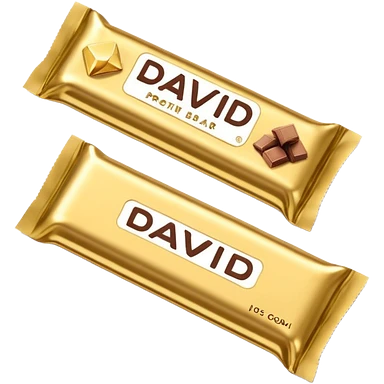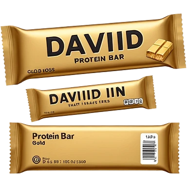 protein bar gold wrapper that says David on it in black font with a small brown box on it emoji | AI Emoji Generator