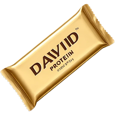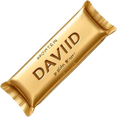 protein bar gold wrapper that says David on it in black font with a small brown box on it