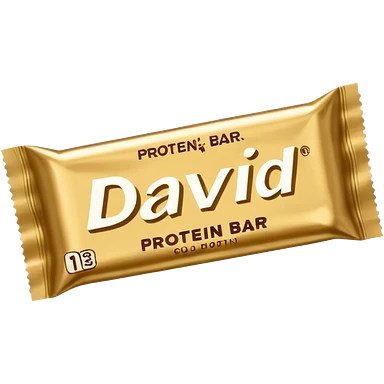 protein bar gold wrapper that says David on it emoji