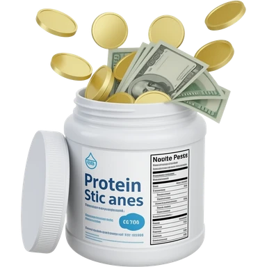 Protein party explosion with chicken breast, red meat steak, salmon fillet, and egg bursting upward from center like fireworks, with the largest chicken piece in front, DNA strands spiraling around them, and muscle silhouette in background emoji | AI Emoji Generator