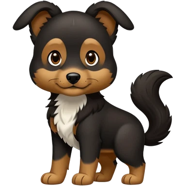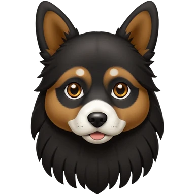 haz un perro negro con las patas y el ozico blancos toques marrones mucho pelo y ojos marrones emoji