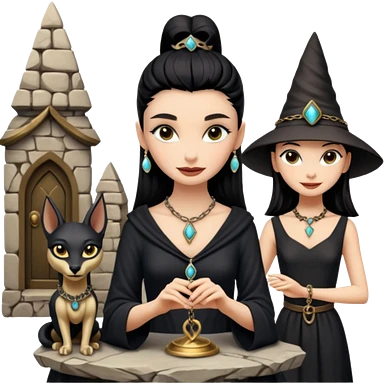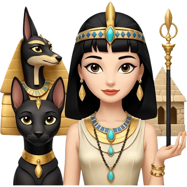 Kindly alien Elisabeth Taylor cleopatra Protecting spell silky black-haired tiny statuette scale feral Anubis and pyramid scenery stone-age cracked irregular dwelling emoji