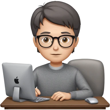 Profesor de pelo gris marrón oscuro con gafas un poco de barba jersey gris y un ordenador los óleos son marrones con poca cantidad de pelo emoji