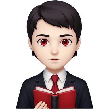 { "type": "human", "look": "young vampire student, tidy uniform, tie, red eyes, holding book", "description": "a young vampire student with red eyes wearing a neat uniform and holding a book" } emoji