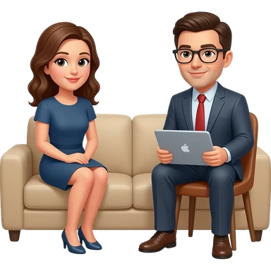 psicologo sentado en una silla atendiendo a una mujer en un divan emoji