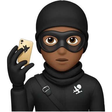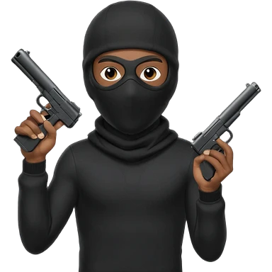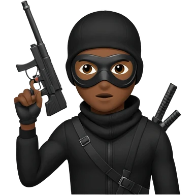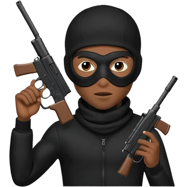 A young African male wearing a ski mask in full black clothing, holding a micro Draco gun in the air carelessly emoji