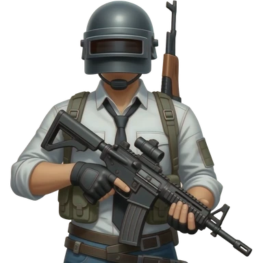 Create a cute emoji-style PUBG Mobile character, chibi version with helmet and backpack, standing in victory pose, holding a blank white sign or paper sheet in both hands in front of chest, ready for text, clean white background, simple emoji design” emoji